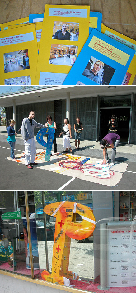 Der Kiezpool warb dafür Jugendlichen aus dem eigenen Kiez vierteljährige Praktika anzubieten, in denen Sie neben der allgemeinen kaufmännischen Tätigkeit zwei Sonderaufgaben erfüllen: Eine außergewöhnliche Schaufensterdekoration für alle teilnehmenden Läden zu basteln, deren Präsentation als Pressetermin genutzt wurde. Und die Erstellung einer Studie zum Kaufverhalten von Jugendlichen, aus der mögliche Maßnahmen für den Standort abzulesen waren.